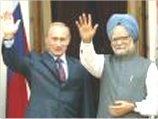 پوتين در کنار نخست وزير هند در دهلي نو (سال 2004)