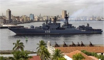 يکي از ناوهاي روسيه در بندر هاوانا در 22 دسامبر 2008