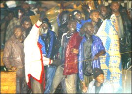 بيست و نهم دسامبر 2005 و در ساعات شب، پنج هزار پليس مصري در قاهره به گروهي از آوارگان سوداني كه از چند هفته پيش در ميداني مقابل دفتر آوارگان سامل ملل اعتصاب نشسته كرده بودند حمله بردند و آنان را از آنجا خارج ساختند. در اين عمليات 20 سوداني كشته و عده اي نيز زخمي شدند و به بيمارستان انتقال يافتند. اين سوداني ها شبها با به خود پيچيدن پلاستيك و پتو در اين ميدان مي خوابيدند و از كارتن براي فرار از سرما استفاده مي كردند. اين اعتصاب از زماني آغاز شده بود كه دفتر پناهندگان سازمان ملل به اين سوداني ها اطلاع داده بود كه در سودان جنگ پايان يافته و بايد به كشور خود بازگردند و آنان مدعي شده بودند كه قطع جنگ تنها روي كاغذ است. به علاوه، برخي از آنها متهم به درگيري با ارتش شده اند كه بدون دريافت حكم عفو به وطن باز نخواهند گشت. عكس بالا، دسته از آوارگان سوداني را نشان مي دهد كه پس از شنيدن خبر آغاز حمله پليس مصر، سراسيمه شده بودند. |