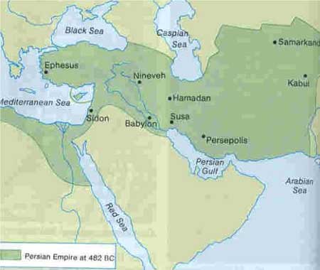| نقشه امپراتوري ايران پيش از لشكركشي خشايارشا به اروپا و