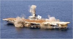 يک سال بعد(ماه مه 2006) و درست در همان روز، نيروي دريايي آمريکا ناو هواپيمابر «Oriskay اوريسکي» را که 888 پا طول داشت و بازنشسته شده بود در خليج مکزيک غرق کرد. عکس زير لحظه انفجار اين ناو غول پيکر را نشان مي دهد که در جنگهاي کره و ويتنام شرکت کرده بود. يکي از تماشاگران اين صحنه به خبرنگاران گفته بود که بايد به روزي انديشيد که تاريخ مصرف پايان مي يابد، ديگر مهم نيست که قبلا چه کرده بودي.